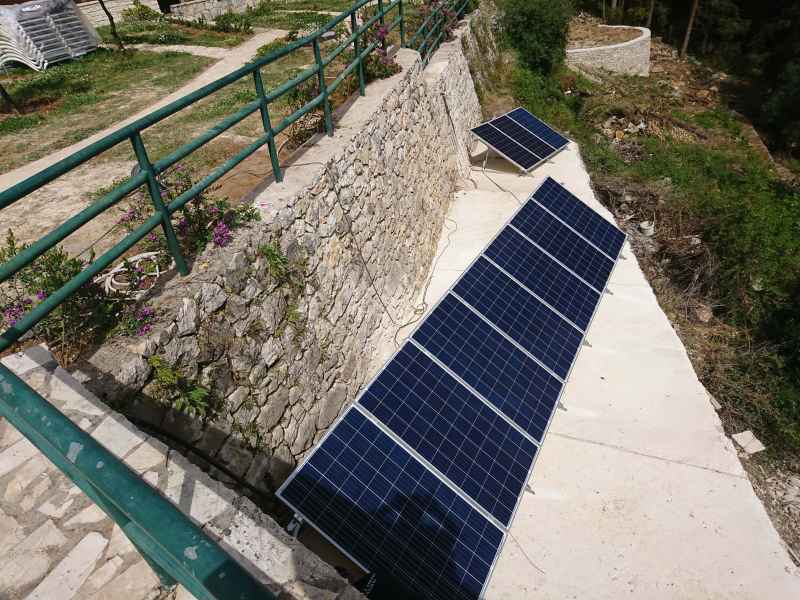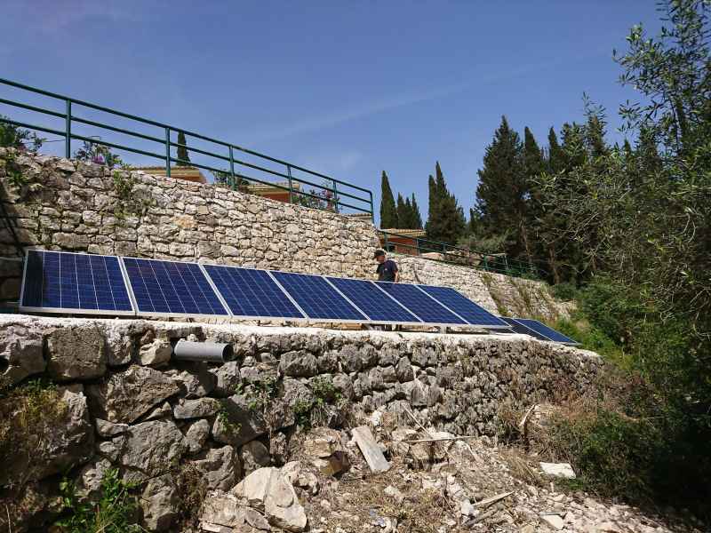 Χρησιμοποιώντας 10 ηλιακά πάνελ, συνολικής ισχύος περίπου 2,6kW, φιλτράρουμε όλη την ποσότητα νερού της πισίνας χωρητικότητας 90m3 , περίπου 2 φορές κατά την διάρκεια της ημέρας όσο υπάρχει ηλιοφάνεια.