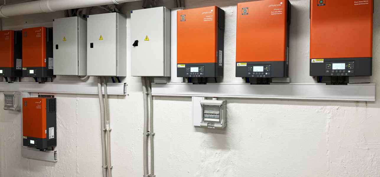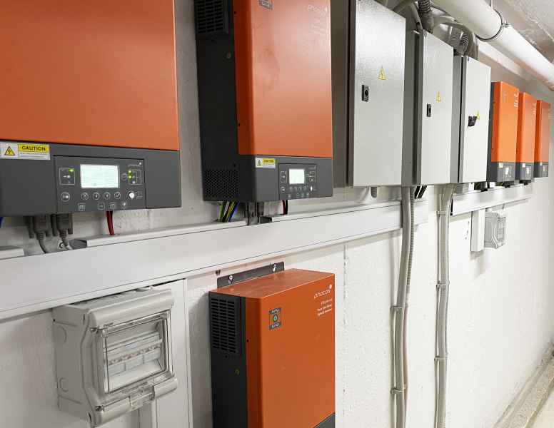 - 6 Inverters Phocos PSW-5000-48 (Τριφασική λειτουργία, ισχύς εξόδου 10Kw / φάση)