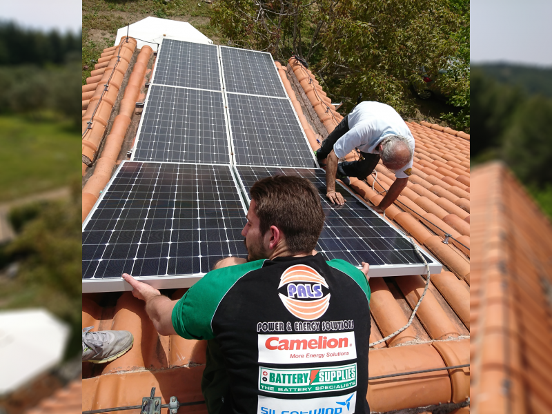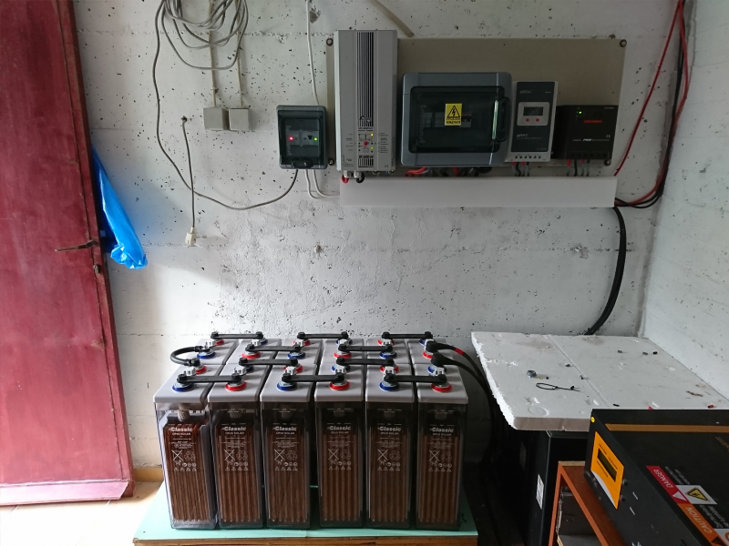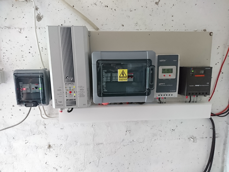 Η συνολική φωτοβολταϊκή ισχύς είναι 1,14 kW.  Συνολικά εγκαταστάθηκαν 6 συλλέκτες 190Wp στην κεραμοσκεπή ,σε 2 ρυθμιστές φόρτισης . Η ηλιακή ενέργεια αποθηκεύεται σε  12 μπαταρίες ( δίβολτα στοιχεία ) ανοιχτού τύπου συνολικής χωρητικότητας 500Αh στα 24V.