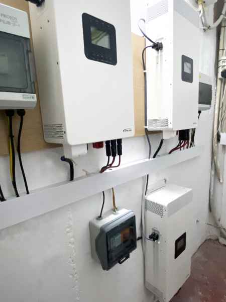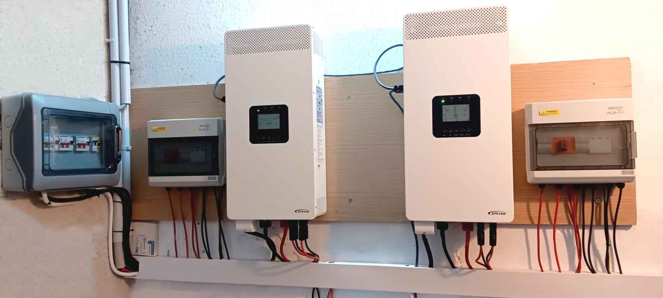 - 3 Υβριδικά Inverter EPEVER HP-5542W-AH1050P20A ΥΒΡΙΔΙΚΟ INVERTER/CHARGER 48V 5500W, τα οποία έχουν συνδεθεί παράλληλα μεταξύ τους,